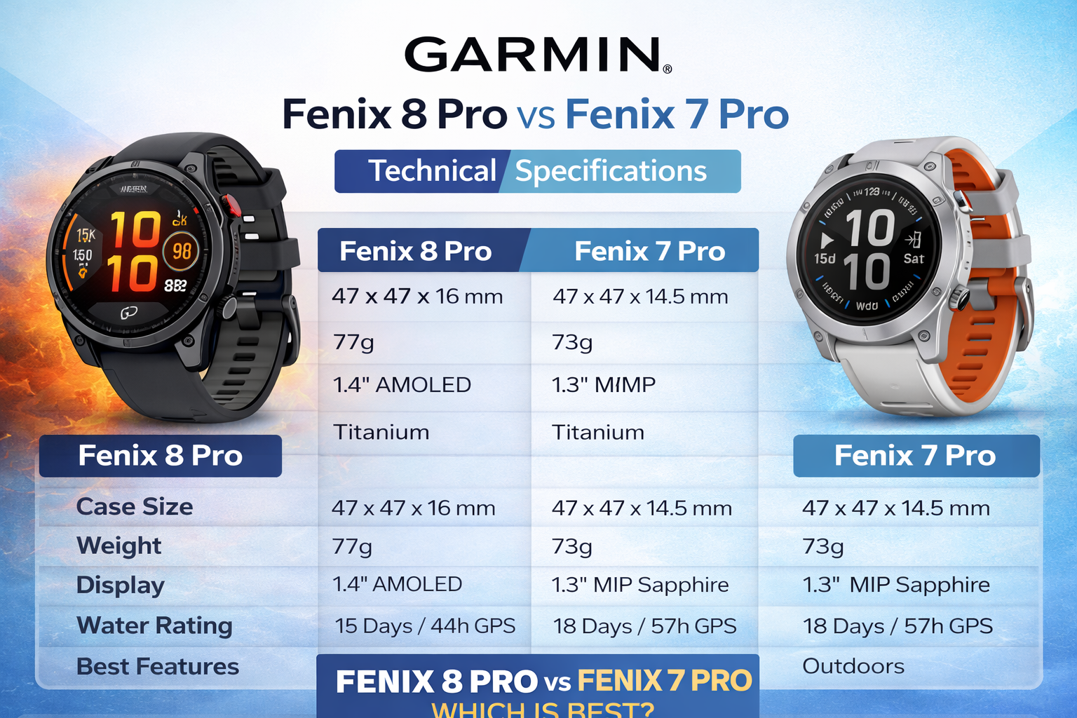 Overall Value: Fenix 8 Pro – 4.3/5 Fenix 7 Pro – 4.7/5