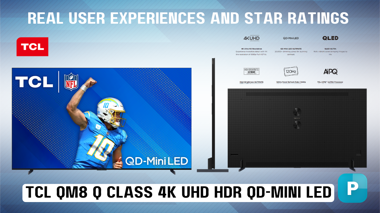- ⭐⭐⭐⭐⭐ Absolutely blown away by the TCL QM8 Q Class 4K UHD HDR QD-Mini LED reviews Specifications—it crushes expectations. Dolby Vision IQ adapts perfectly to my room's light. Sound from the ONKYO system is surprisingly immersive with Atmos height effects. Setup was easy, and the backlit remote is a nice touch. Worth every cent for home theater lovers.